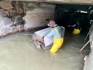 Até o momento, não foi apurado se o freezer foi descartado irregularmente no local ou arrastado de outro ponto pela enchente.