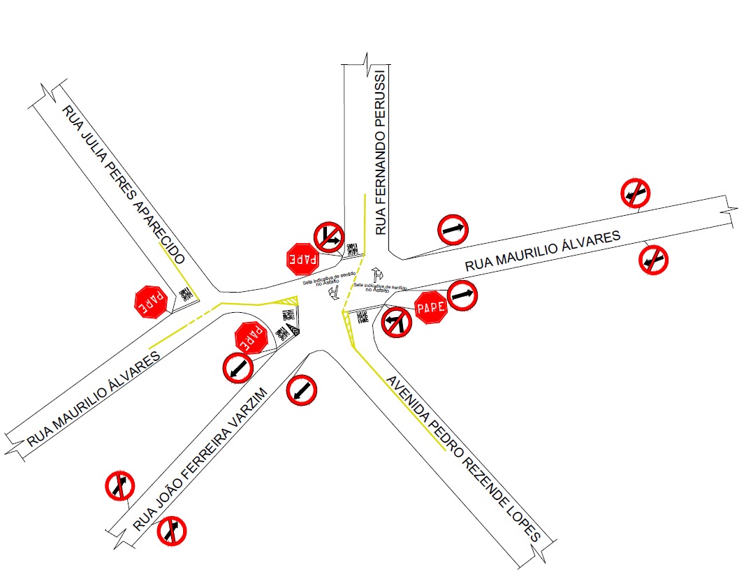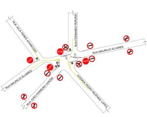 Outra alteração será a proibição de conversão à esquerda no cruzamento da Avenida Pedro Rezende Lopes com a Rua Maurílio Alvarez. A mesma restrição será aplicada na interseção da Rua Fernando Perussi com a Rua Maurílio Alvarez.