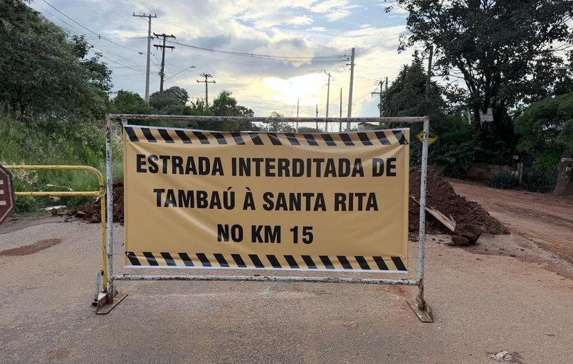 A Rodovia SRQ 010, no km 15, que liga Tambaú a Santa Rita do Passa Quatro, está totalmente interditada devido aos danos causados pelas fortes chuvas do dia 28 de janeiro.